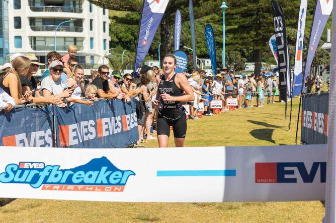 Eves Surfbreaker Triathlon held on 27 December 2024 at Mount Maunganui Main Beach.