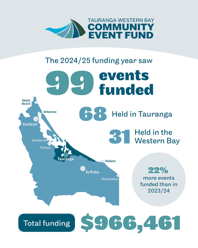 With 31 events held in the Western Bay and 68 in Tauranga, the fund continues to provide a diverse range of community-focused opportunities across the region.