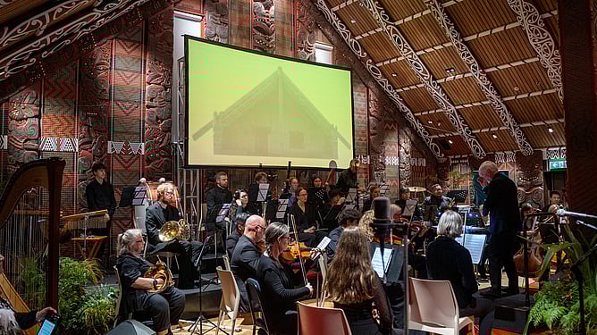 Opus Orchestra first performed the work inside Mataatua Whare in June 2025, in a private concert for Ngāti Awa, who were actively involved in the development of the piece. That performance was a powerful moment of cultural connection and collaboration, before the work went on to its first public performance in Dunedin.